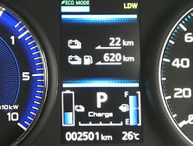 病院で充電前のEV8km 会社からの移動14km で(-14km)