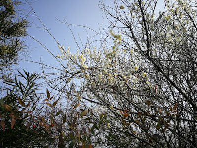 近所の梅は5分咲きです。いつものようにスマホの写真です。